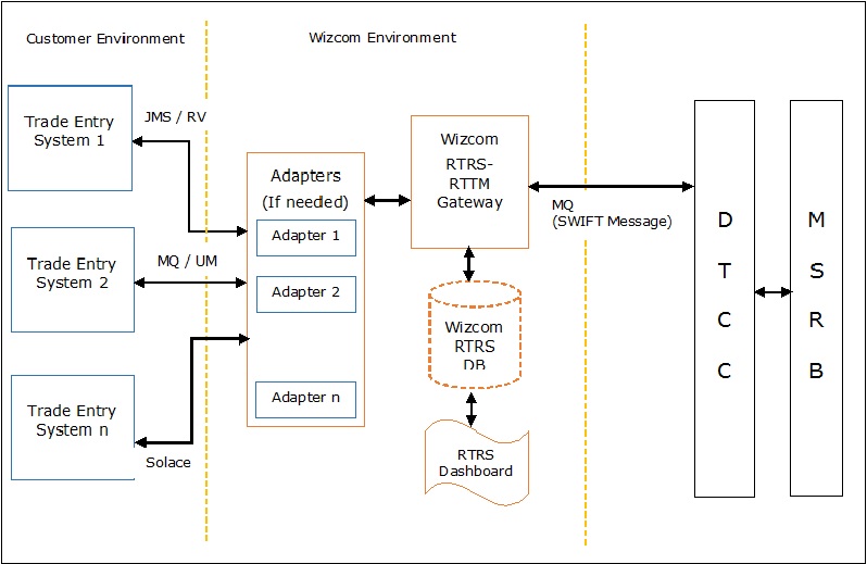 Wizcom’s Real-time Trading Reporting System (RTRS) gateway is used to report to MSRB or its designee (via DTCC), about each purchase and sale transaction effected in municipal securities by each Broker, dealer or municipal securities dealer.